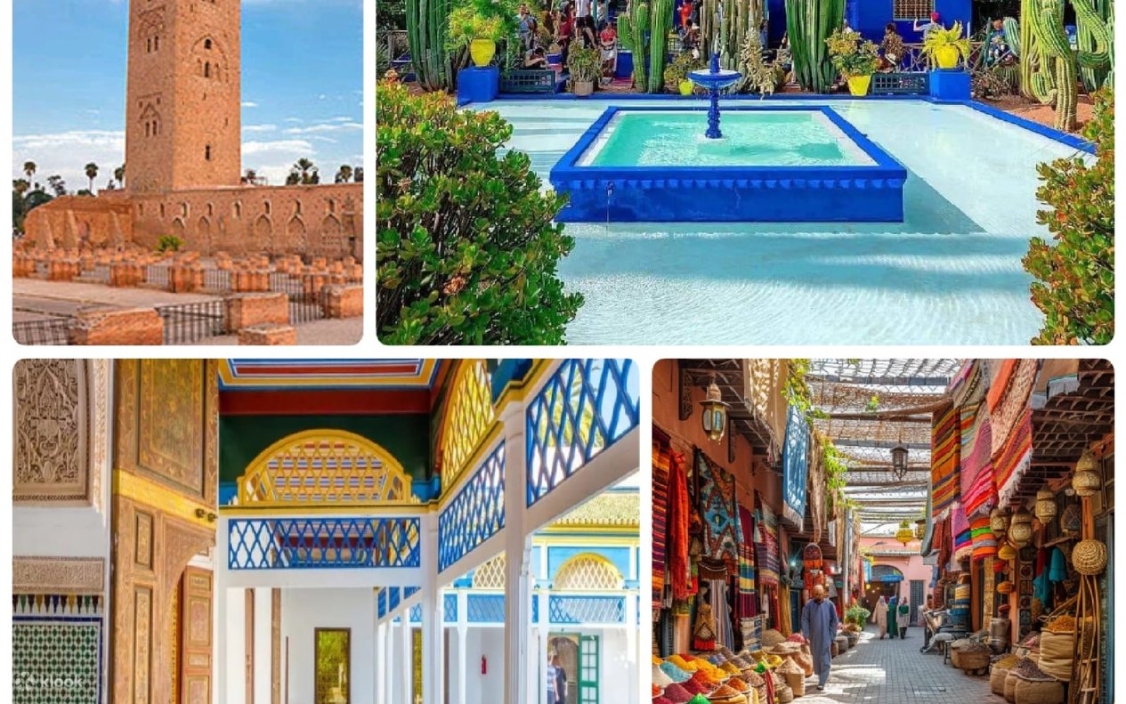 Explore Marrakech’s top sights on a half-day private tour. Visit the Majorelle Garden, a tranquil oasis with vibrant plants, the Berbère Museum, and the Yves Saint-Laurent Memorial. Experience the lively Jemaa el Fna Square and its bustling souks filled with crafts, spices, and textiles. Admire the architectural beauty of the Bahia Palace, offering insight into the opulent lifestyle of the vizier’s family. Discover the intricate artistry of the Saadian Tombs and finish at the iconic Koutoubia Mosque, known for its towering 77-meter minaret and surrounding gardens.