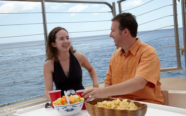 Set sail from Waikoloa on a spacious catamaran designed for comfort and relaxation. The vessel features shaded seating areas, open-air viewing decks, restrooms, and fresh water showers, creating a pleasant setting for a coastal journey. As the catamaran glides along the ocean, the horizon transforms into a breathtaking display of sunset colors reflecting across the water. Guests can enjoy a selection of refreshing beverages, including tropical cocktails, wine, beer, soft drinks, and juice, while soaking in the scenery. Beach boarding offers a barefoot experience from shore to deck, adding to the island atmosphere. This leisurely evening cruise combines natural beauty, gentle breezes, and warm Hawaiian hospitality for an unforgettable sunset adventure.