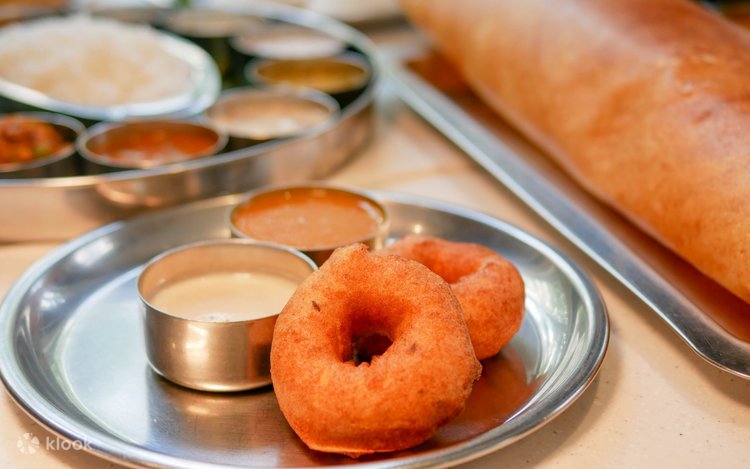 Follow up your meal course with a serving of Medhuvadai, a doughy snack best eaten with a variety of authentic Indian sauces