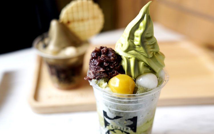 Dig into the TSUJIRI Matcha Shaved Ice's refreshing slush mix while shopping in EmQuartier