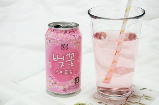 To wash down the burger, you can also get some cherry blossom sparkling soda at GS25! Is that a blooming good meal, or what?