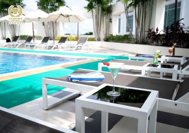 Which popular hotels in Ho Thi Ky Flower Market have swimming pools?