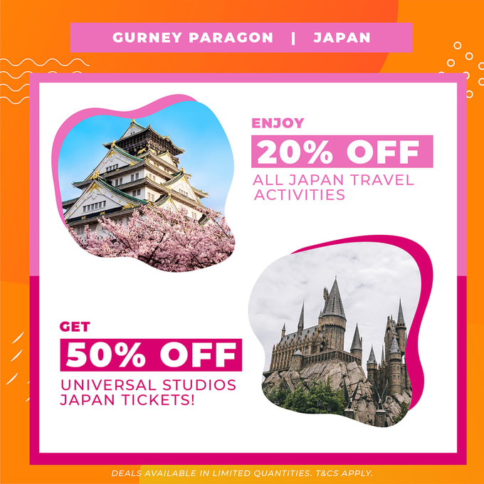 If you’re excited to experience the real deal in Japan, come by the Klook booth at Gurney Paragon Mall to get special discounts for your trip. There’s even half-price for Universal Studios Japan tickets. They’re limited, so come early to get your deals and avoid disappointment!