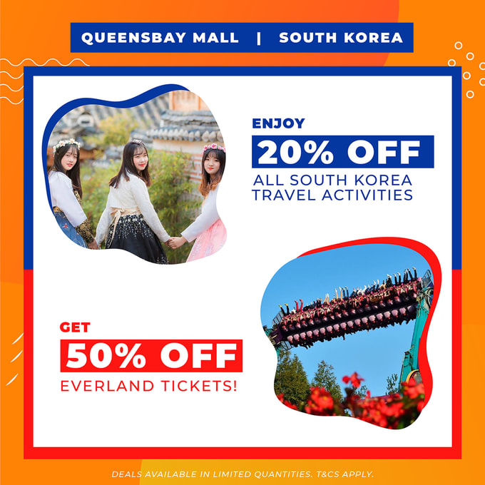 If you’re planning a trip to South Korea soon, get discounts off Korea activities from Klook when you come by our booth in Queensbay Mall. There’s even 50% off the popular Everland. Only available in limited quantities, better hurry and come early!
