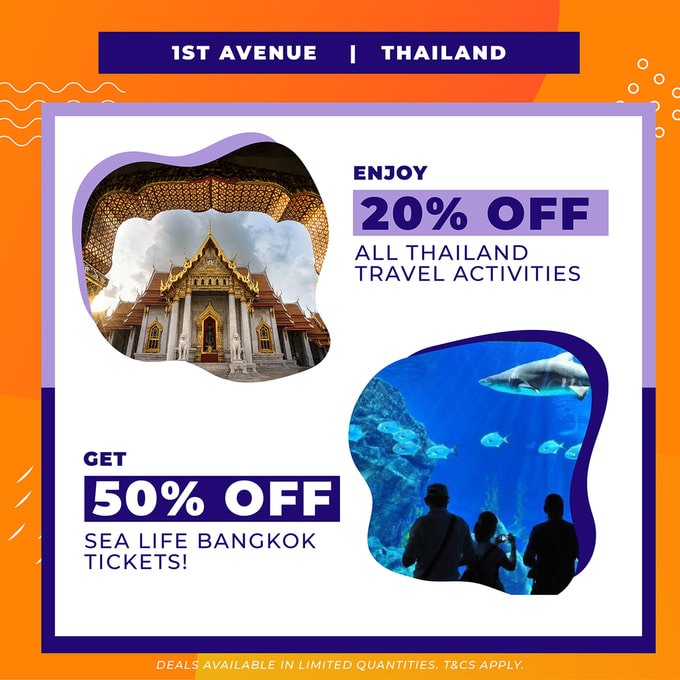 Conveniently a short plane ride away, why not take a spontaneous trip to Malaysia’s favourite neighbouring country for a long weekend getaway? Get more bang for your buck with discounts on all Thailand activities at the Klook booth in 1st Avenue!