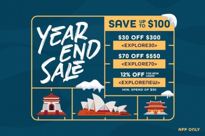 - New users can enjoy 12% off min spend $50 with code “EXPLORENEW”