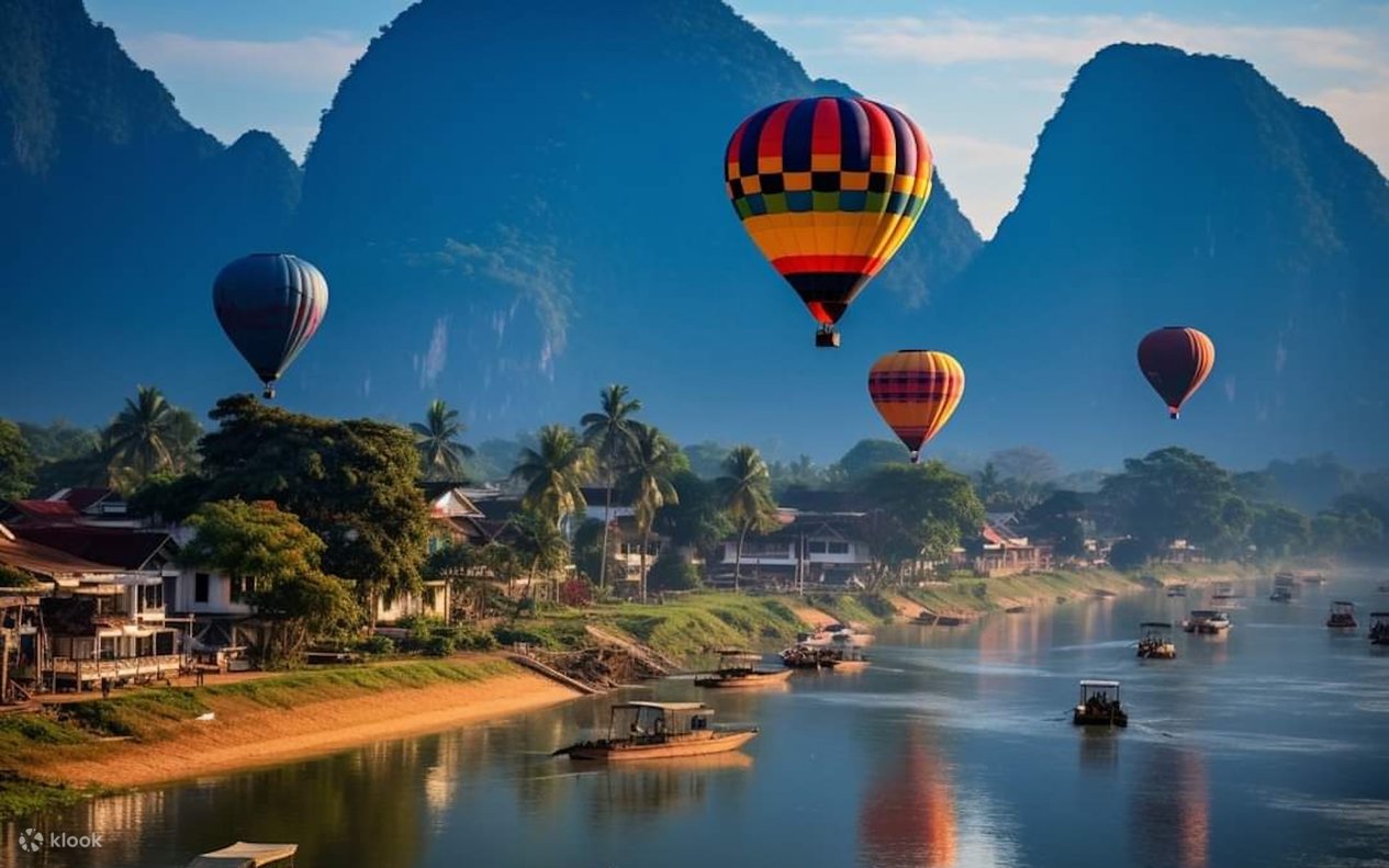 Vang Vieng: Cave Tubing, Cave hiking, Zipline, Kayak, Lagoon 1, Hot Air Balloon Day Tour