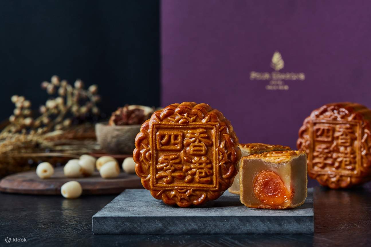 【Mooncake Offers 2022】Four Seasons Hotel Hong Kong | Four Seasons White Lotus Seed Paste Mooncakes with Double Salted Egg Yolk (4pcs) | Pick up at Four Seasons Hotel Hong Kong (1/8-9/9)