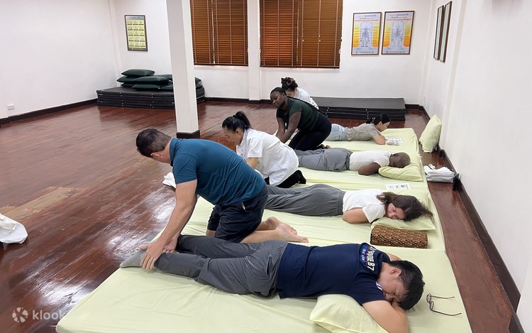 - Join a 2-hour session: 1 hr full Thai massage + 1 hr hands-on training at Wat Pho’s school