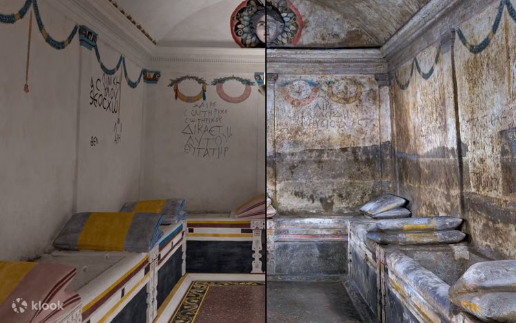 Descend beneath Naples and explore the rare ancient Greek necropolis of the Ipogeo dei Cristallini with an exclusive guided tour. Buried for centuries by mudslides, this crypt was unearthed in 1889, revealing a glimpse into life in ancient Neapolis, where modern Naples now stands. Discover where prominent Greeks were laid to rest, with intricately carved pillows and stunning sculptures preserved in the bedrock.Marvel at dozens of columns, exquisite frescoes, and sculptures, some still showing traces of red pigment on their lips. Nearly 400 years before the Pompeii tragedy, these underground crypts tell the story of a society frozen in time. Your tickets allow a rare chance to experience this captivating hidden world firsthand