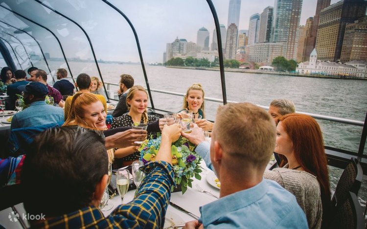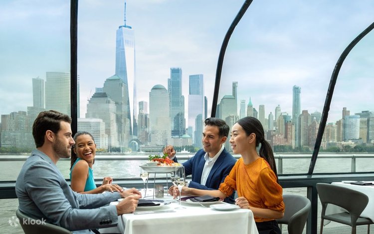 Whether it's brunch or lunch, indulge in a delightful menu while admiring the breathtaking panoramic views of New York City's skyline. You'll have the chance to see iconic landmarks such as the Statue of Liberty, the Empire State Building, Brooklyn Bridge, and One World Trade Center up close.