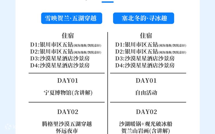 - [Two Theme Options: Five Lakes Crossing/Winter Ice Fun, Choose 1] A. Five Lakes Crossing: Professional guide to explore the Western Xia Mausoleums/Museum, experience movable type printing, cross the Tengger Desert by off-road vehicle, check in at the "Heart of the Earth" Red Lake, and capture stunning aerial shots with a drone. B. Winter Ice Fun: Enjoy a cruise on a icebreaker in Shahu Lake, sample Wuzhong morning tea + hot pot, enjoy eight-treasure tea with mutton to dispel the cold, and experience the local life of Ningxia.