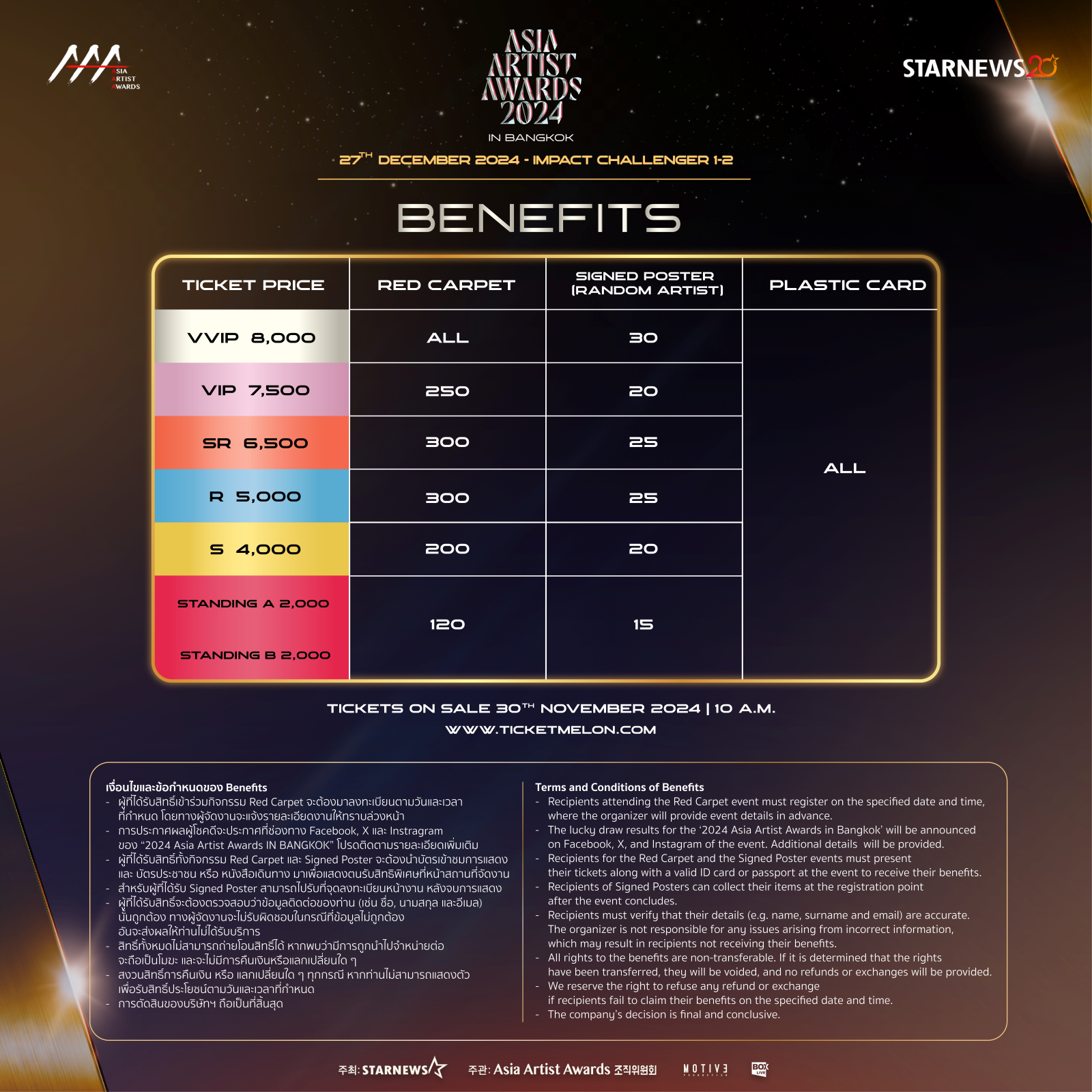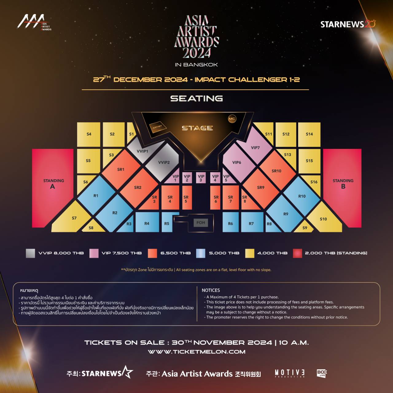 🎫 Tickets Price: VVIP THB 8,000 / VIP THB 7,500 / THB 6,500 / THB 5,000 / THB 4,000 / THB 2,000 (standing)