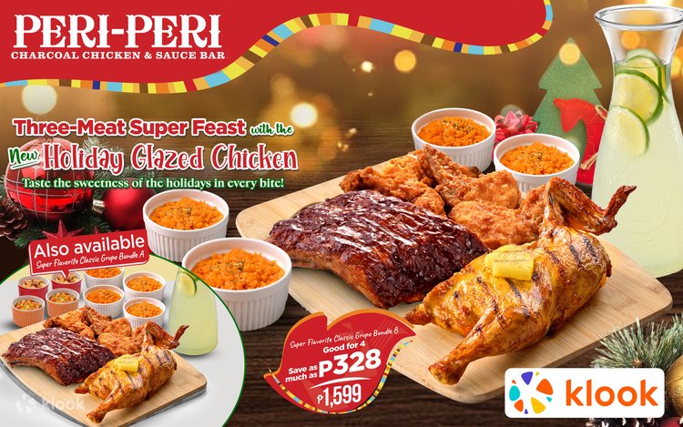 - Get a complimentary Supercard and enjoy a super blowout of rewards and discounts worth P2,637. This deal is valid at all Peri-Peri Charcoal Chicken & Sauce Bar locations nationwide