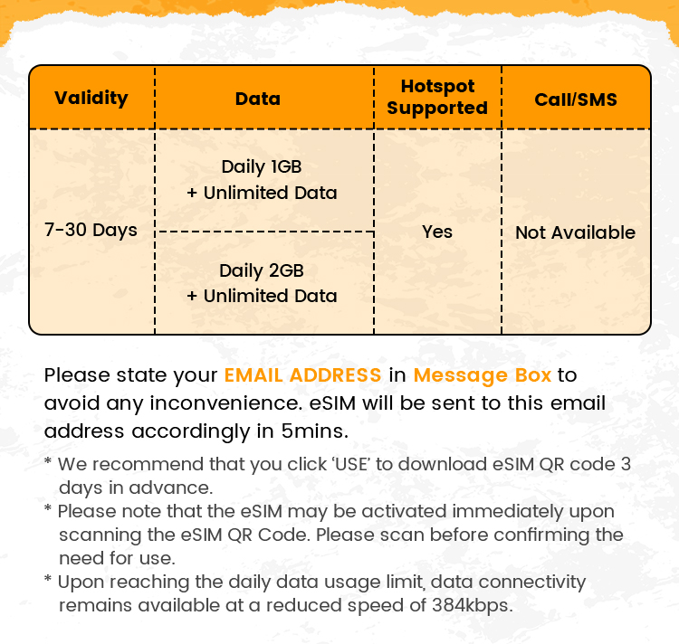 • eSIM will be sent to the email address stated in 5 minutes
