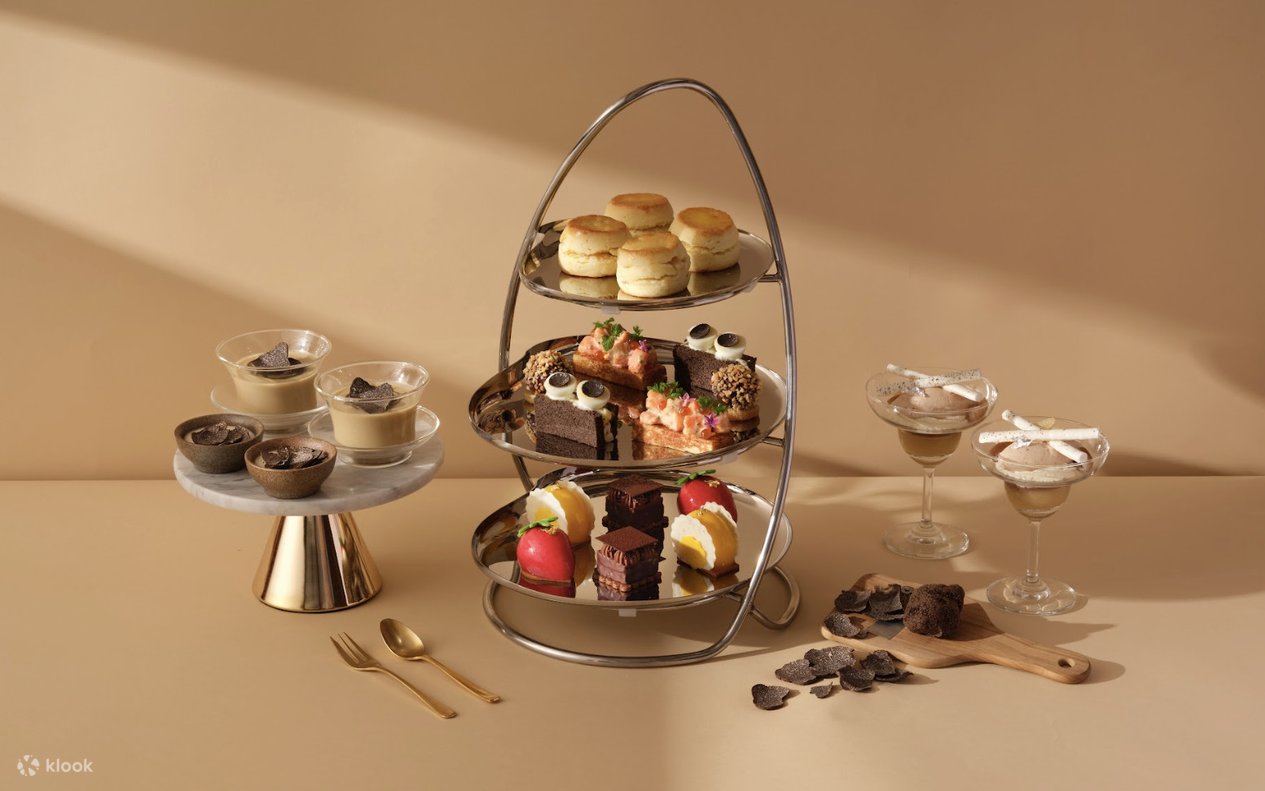 Your journey begins with premium caviar served in its original tin, setting the stage for a luxurious afternoon tea experience. Following this, savour the exquisite creations thoughtfully crafted by our culinary team. Our savoury selection showcases the seasonal ingredients, featuring oceanic treasures like tender crab meat, translucent salmon roe, and aromatic smoked salmon. The dessert offerings are equally enchanting. Highlights include the richly layered Chestnut and Apple Cake, irresistibly sweet Honey Kumquat Cake, elegantly refined French Fromage Blanc with Cassis Cake, and the timelessly romantic Black Forest Parfait.