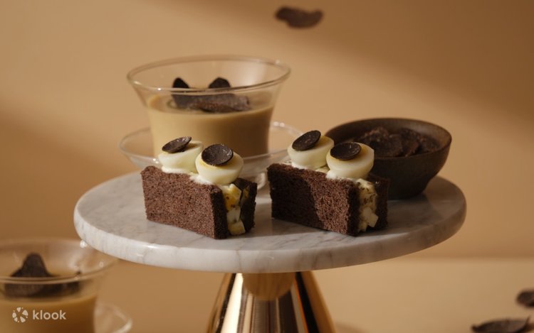 This luxurious journey begins with a silky Black Truffle and Chestnut Velouté, followed by an exquisite array of savouries including Black Truffle Panna Cotta, Egg Salad Sandwich with Black Truffle Cream, Foie Gras Rocher, and a Prawn Sandwich with Salmon Roe. The indulgence continues with a curated assortment of desserts, featuring the adorable strawberry-shaped Korean Strawberry Cake, rich Dark Chocolate and Sobacha Cake, refreshing Mandarin and Mango Cake, and a delicate Chestnut Parfait.