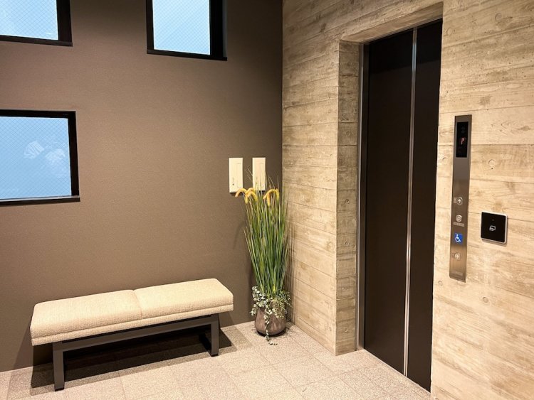 The lobby exudes a modern, artistic aesthetic, featuring paintings by Itoshi Sakhrani based on Kyoto.