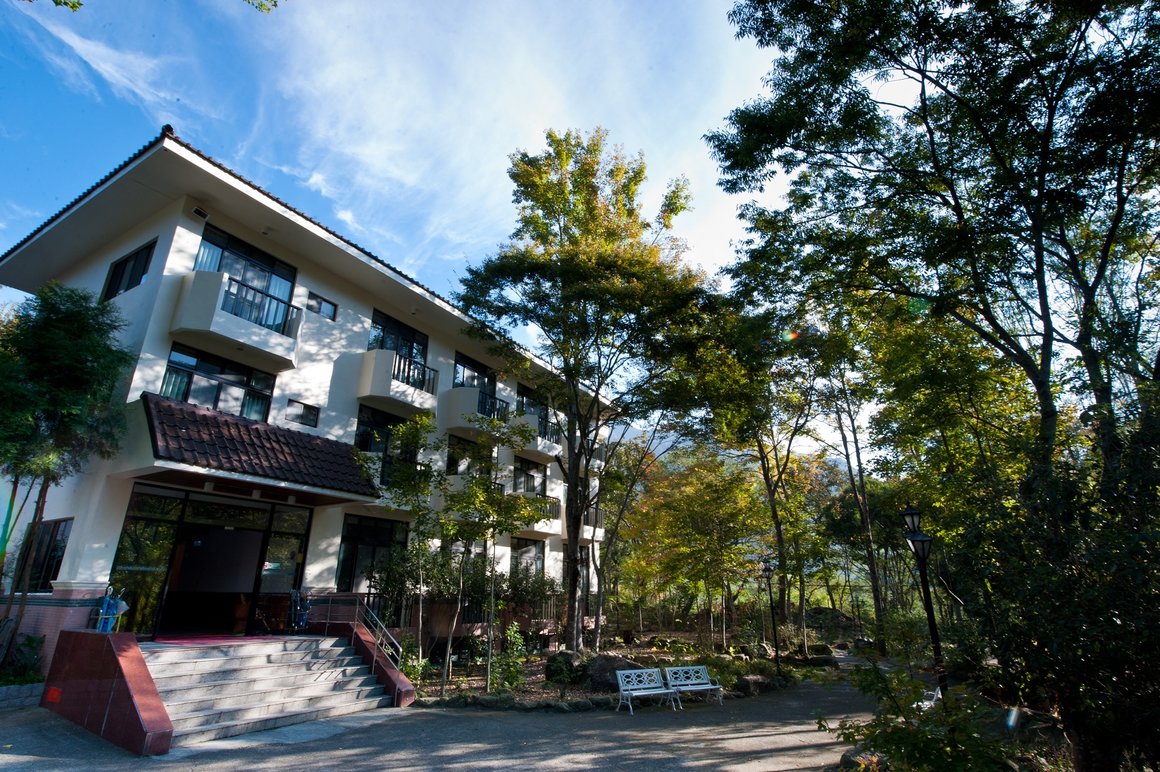 Island setting with suspension bridge. Sturgeon hot pot a highlight. Comfortable rooms with private hot springs. Relaxing, scenic, great breakfast and dinner. Friendly staff.