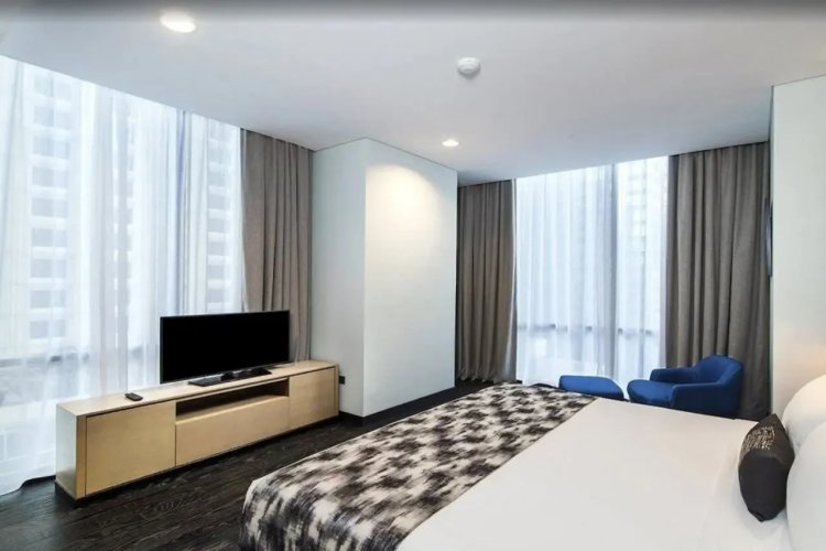 Mangkuluhur Residences by Lorin enjoys a location in Jakarta, 3. 8 miles from Tanah Abang Market and 4. 8 miles from National Museum of Indonesia. 3. 4 miles from Selamat Datang Monument and 3. 5 miles from Grand Indonesia Mall, the property features a rooftop pool and an indoor pool. The property is 3. 3 miles from Pacific Place, and within 0. 7 miles of the city center. Accommodation is equipped with air conditioning, a fully equipped kitchenette with a dining area, a flat-screen TV, and a private bathroom with bidet, slippers, and a hair dryer. Free Wifi is accessible to all guests, while certain rooms are equipped with a balcony. At the condo hotel, each unit includes bed linen and towels. Sarinah is 5. 2 miles from the condo hotel, while Plaza Senayan is 5. 4 miles from the property. The nearest airport is Halim Perdanakusuma International Airport, 6. 8 miles from Mangkuluhur Residences by Lorin.