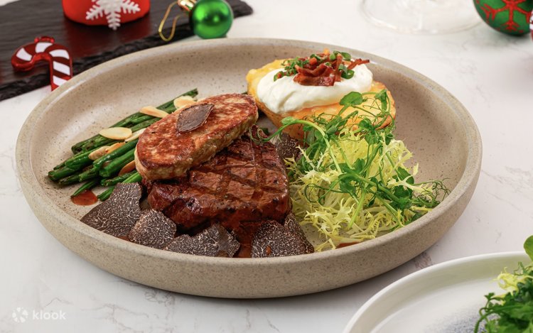 The festive menu opens with a refined selection of appetisers and soups: Wreath Salad with Smoked Duck Breast, Classic Lobster Bisque enriched with Traditional New England Crab Cake. For the main course, diners may choose from four signature dishes – Tournedos Rossini, Pan-seared Chilean Sea Bass Filet, Festive Roasted Turkey or Honey Glazed Gammon Ham. The experience concludes on a sweet note with a limited-edition Festive Dessert created exclusively for the season. The set dinner also includes Free-Flow selected red and white wines, orange juice, coffee, and tea, ensuring guests can relax and celebrate without restraint.