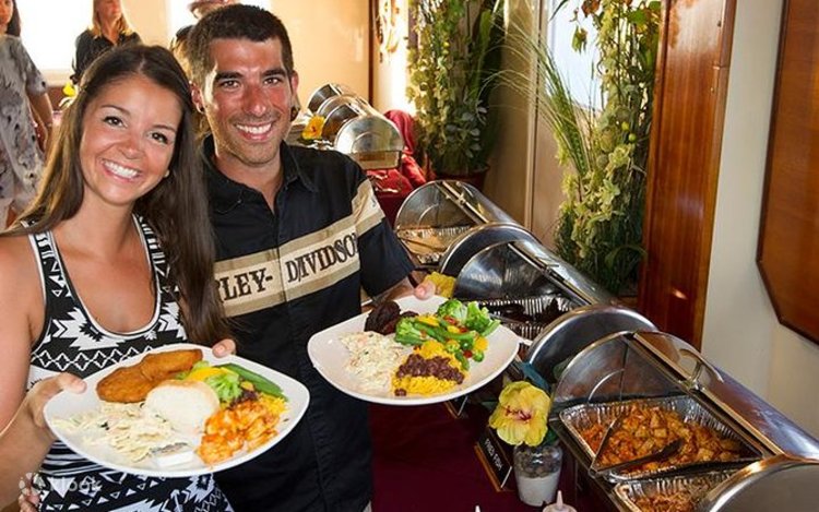 - Dine onboard with a full buffet