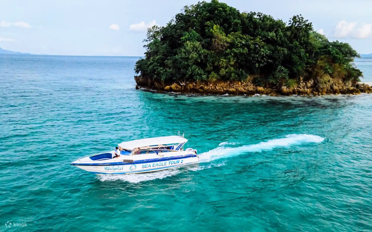 Embark on a whirlwind adventure through the emerald labyrinth of Phang Nga Bay. Speed across the crystal-clear water on a sleek speedboat captained by Sea Eagle Tour, the wind whipping through your hair as towering limestone giants rise from the sea like slumbering dragons.