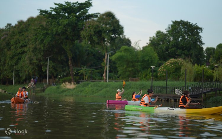 Explore the local community kayaking through the main river Mae Ping in Chiang Mai about 5-6 kilometers latest afternoon through evening till night where pass through the city of Chiang Mai. You will be pick up from your accommodations at 16:30 - 17:00 p.m. Get introduction what are you expected to explore. Guided sightseeing the biggest old market named Warorot market locally known as Kad Luang and one of the most tourists' attraction event Thai or foreigners. Pass along many colorful restaurants, hotels, bars and crossing under the 3-4 big bridges during busy traffic where there are many of birds' nests. Superb scenery during sunset with plenty of noisy birds flying. Enjoy kayaking about 02:00 hours till 19:30 p.m. exploring local Thai activities and transferred back about 20:00 p.m.
