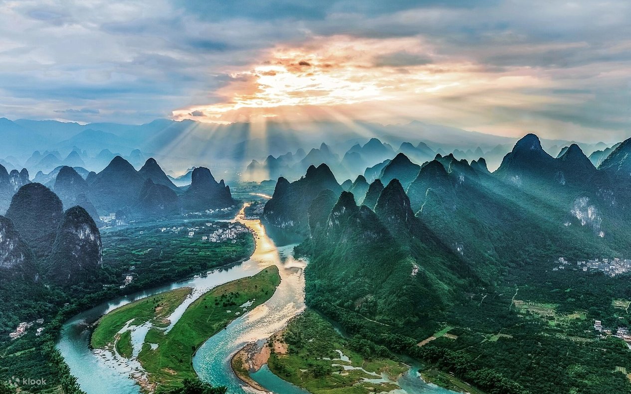 - 【Modern Landmark Check-in】Take a bamboo raft on the Yulong River and check in at popular photo spots; get the same background as the 20 RMB note on the Xingping Lijiang River; trendy check-in at the Fishing Fire Market in Xingping Ancient Town; cycle through the Ten-Mile Gallery and capture picturesque scenery; climb Xiangong Mountain and overlook the stunning landscape; leave happy moments by the bonfire with the help of light and shadow.
