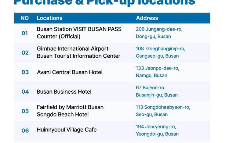 - Attractions: Use the pass to enter major sites like Busan X the Sky observation deck, Haeundae Blueline Park beach train, Lotte World Adventure Busan, Skyline Luge Busan etc.