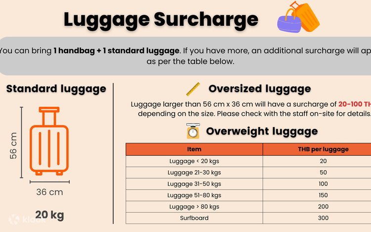 - Extra fees may apply for oversized and/or additional luggage. Please pay any extra fees directly to the operator
