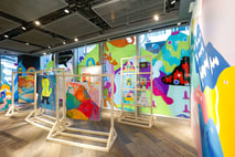 Zoie Lam's multimedia artwork this time takes ZLISM's character "Tiao Tiao" as the main character; "ZL" is the abbreviation of the first letter of Zoie Lam's name, followed by "ISM", which represents her philosophy of life and ideas. The "Zlism" planet created under the brush of Zoie, the characters inhabiting it are kind and exude positive energy; the paintings are closely related and tell fascinating stories. The theme of this exhibition is "Stars Lead the Way and Set Sail in Fantasy". The protagonist "Tiao Tiao" re-adventures to new places, so as to re-understand his blueprint, presenting brightly colored patterns in the form of dense and complex tapestry; plus The creation of different media but the same theme, the colorful colors are dazzling and full of positive energy, the abstract and interesting paintings give people unlimited imagination, I believe everyone will love it very much. The exhibition period coincides with Easter, agnès b. hopes to celebrate the festival that symbolizes hope through this joyful and colorful collaboration; besides providing programs for the holiday, it also shares art, love and hope through the exhibition.