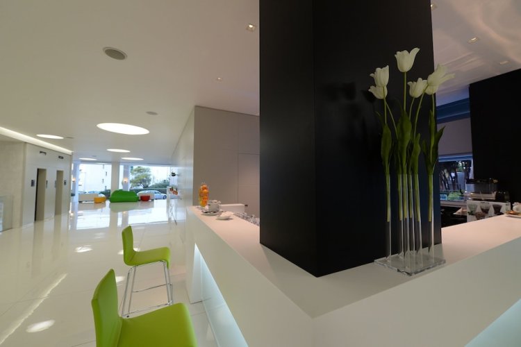 The hotel is near a beach