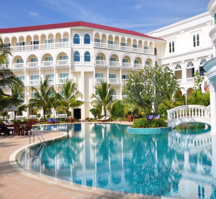 The resort enjoys an ideal location for business and leisure travellers alike. It is situated along the picturesque beachfront of Koh Kong, a coastal area in the Southwest of Cambodia and one of the finest beach resorts in the kingdom. There is a wide stretch of beach right outside the property. The hotel is set just 200 m from the Baan Had Lek border between Thailand and Cambodia, 89 km from the province of Trad, 405 km from Bangkok and 250 km from Phnom Penh Airport. The hotel enjoys spectacular views, and offers guests a peaceful retreat amid fresh, calm sea breezes. It provides excellent Cambodian hospitality, modern amenities and a total of 520 high quality accommodation units. Guests can also enjoy a wide range of leisure facilities including the hotel's casino, slot machine games and live gaming. There is a business centre on site. Further facilities at this air-conditioned establishment include a 24-hour reception and check-out service, a hotel safe, a currency exchange facility, lift access, a newspaper stand, a hairdressing salon, a café, a bar and a restaurant. Guests can also make use of the hotel's room service and car park. WLAN Internet access and a laundry service are available for a fee. The resort offers six different types of accommodation, ranging from standard rooms to executive and presidential suites. Each room is fitted with a separate bath and shower and provides excellent facilities for business and leisure travellers alike. A king-size bed, a direct dial telephone, a satellite/cable television, a safe, a minibar, individually adjustable air conditioning and a balcony or terrace come as standard in all rooms.