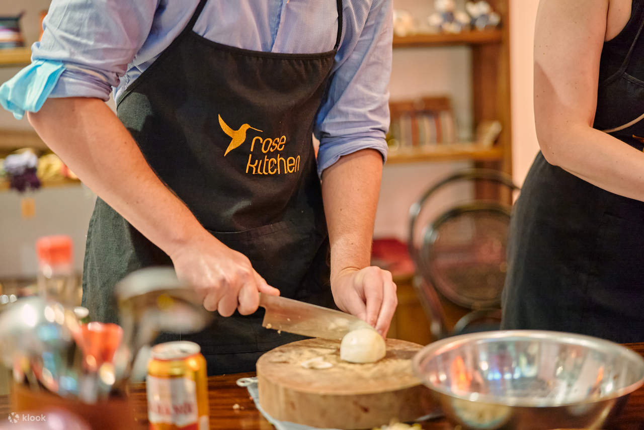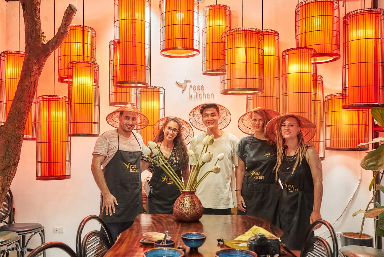 Comienza tu aventura con un paseo guiado por uno de los bulliciosos mercados locales de Hanói, donde elegirás ingredientes frescos, descubrirás productos vibrantes y te empaparás del animado ambiente como un verdadero lugareño. Entra en la encantadora villa con jardín de Rose Kitchen y disfruta de una bebida de bienvenida mientras Rose, tu narradora, comparte las fascinantes historias que hay detrás de los emblemáticos platos vietnamitas.