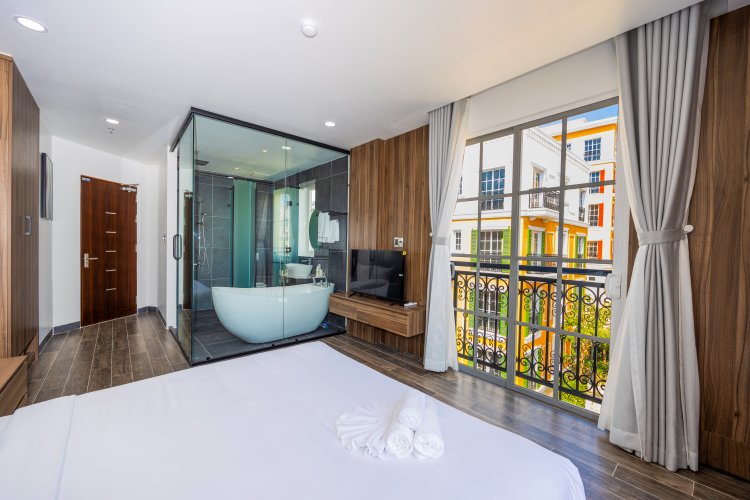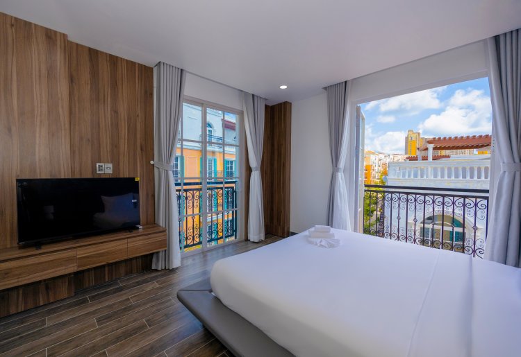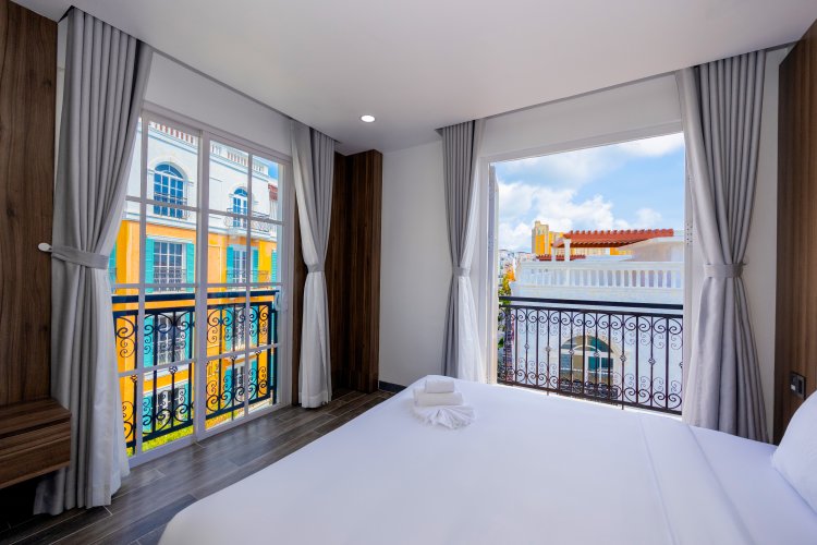 Merci Hotel - Sunset Town Phu Quoc provides flawless service and all the necessary facilities for visitors.Stay connected with your associates, as complimentary Wi-Fi is available during your entire visit. In order to ensure the utmost level of relaxation, the guestrooms feature an inviting design and are equipped with all basic necessities, creating a delightful stay experience.To ensure a pleasant stay, a selection of rooms at serviced apartment come furnished with blackout curtains and air conditioning, all designed with your ease in mind. Several chosen accommodations at Merci Hotel - Sunset Town Phu Quoc have a balcony or terrace incorporated into the room design. Within specific rooms, a refrigerator, bottled water and mini bar is conveniently available for your use. Understanding the significance of bathroom facilities in enhancing visitor contentment, serviced apartment offers a hair dryer, toiletries and towels within a few chosen chambers.