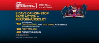 - Tickets available on Singapore Grand Prix official website