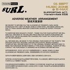 We regret to inform you the Clockenflap Presents: SURL show, scheduled for 1 Sept at Music Zone @ E-Max KITEC, has been cancelled, due to these severe weather conditions caused by Super Typhoon Saola.
