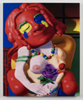 Using exaggeration, caricature, vibrant shades of bright colors, and perfectly rounded, smoothened, and lit VR shapes, the hyper-stylized images merely hint at deeply personal concerns. Evoking Dana Schutz or Peter Saul’s frenzied ambiances, Regner employs humor, goofiness, or absurd to counterbalance the heavier subjects filled with melancholy, empathy, and anxiety. In this light, the Balancing Act, 2024, depicts the fragile and elusive equilibrium of career requirements, marriage, vices, and self-hatred held by a skinny, tired, and scarred (artist’s) hand. The interest in this ongoing clash between expressing oneself, running a professional career, and navigating the demands of society or family is arguably most evident in Future Planning, 2024. Offering an air of solemnity through an approachable and fun picture, the image shows an artist caught in a calm, meditative posture, getting his seemingly Zen-like state interrupted by real-life concerns. The same tension between personal and professional may also be observed in Soul Transfer, 2023, where the anxious artist literally “pours their heart and soul” into the work. With his face (reminiscent of Ashley Bickerton’s colorful portraits) reflecting on the Paul McCarthy-like sculpture while being observed and judged by the Grim Reaper, Regner is underlining the weight and intensity of his choices. Ironically, this more personal and revealing approach is executed through airbrush, a distant, highly impersonal tool that leaves no actual mark of the artist’s hand on the surface. And that, itself, could be a perfect metaphor for careers in the arts - baring oneself emotionally and mentally for everyone to see and judge through a significantly removed, one-way communication.