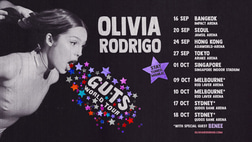 Multi-platinum, three-time Grammy award-winning artist Olivia Rodrigo announced her first-ever run of shows in Asia and Australia, adding 9 international dates to her highly celebrated GUTS world tour. Produced by Live Nation, the tour now includes a massive 82 shows globally, with the new dates kicking off Monday, September 16 in Bangkok, Thailand and continuing through Seoul, Hong Kong, Tokyo, Singapore, Melbourne, and Sydney, wrapping up on Friday, October 19 at Qudos Bank Arena.
