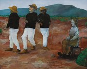 Kazuma Yamamoto, Human and Ape, Oil, acrylic, charcoal on canvas, 194 × 324 cm, 2023