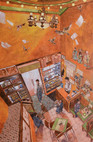 This exhibition will also feature a large-scale six-panel work titled Chicken and Duck Talk 1988 at Tai Po Man Mo Temple. The unique aspect of the artist's collage work is that each panel has an independent figure within it, which also reflects the artist's persistence in the work. The 14 brand new works on display capture many disappearing locations, overlapping impressions that are familiar to Hong Kongers and even tourists, in order to evoke the audience's resonance and collective memories of the city. Each work contains countless details, from the fading neon lights, window grilles, and scaffolding, to every brick and tile, all of which are worth savoring.