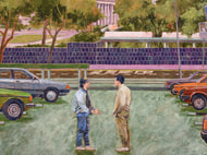 1988 City War at the Carpark of Star Ferry Pier (detail), Acrylic on canvas, 152 x 100 cm, 2024