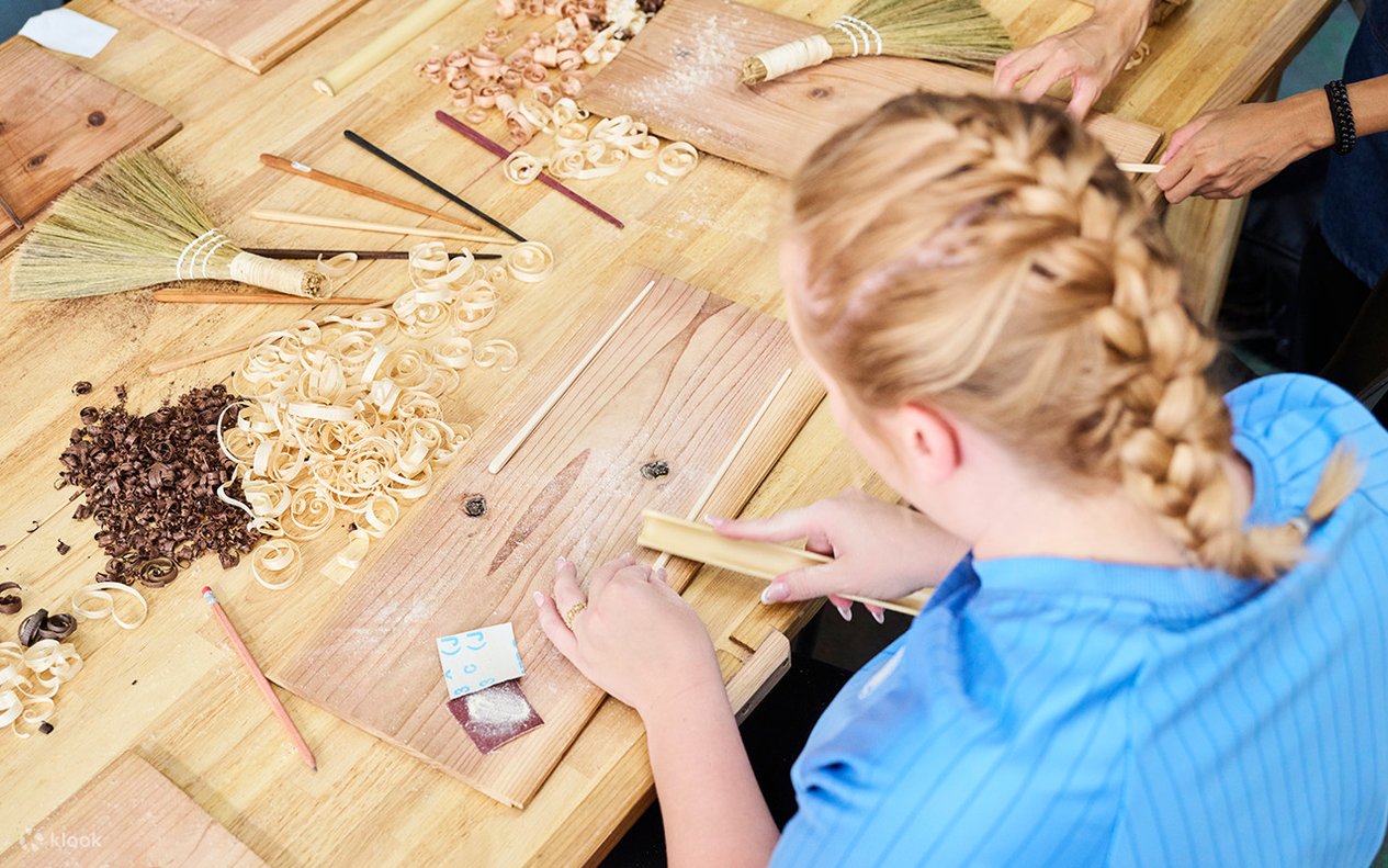 Pénétrez dans le pittoresque Arashiyama de Kyoto et fabriquez vos propres baguettes en bois dans un atelier traditionnel et paisible.