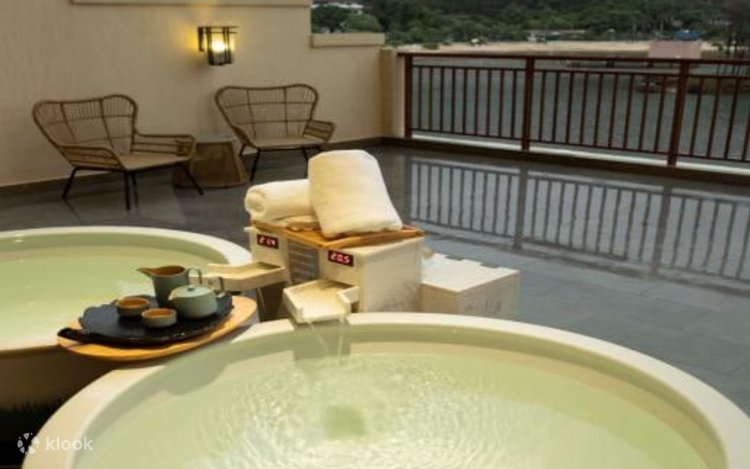- Chaque chambre dispose d'un bain de source chaude privé indépendant sur la terrasse, et la superficie de la chambre est spacieuse à partir de 80 mètres carrés, équipée d'un certain nombre d'articles d'expérience aux écorces de mandarine : notamment des sacs de bain aux écorces de mandarine, du thé aux écorces de mandarine, des écorces de mandarine. des collations et la cuisine de l'hôtel sur le thème des écorces de mandarine, etc.