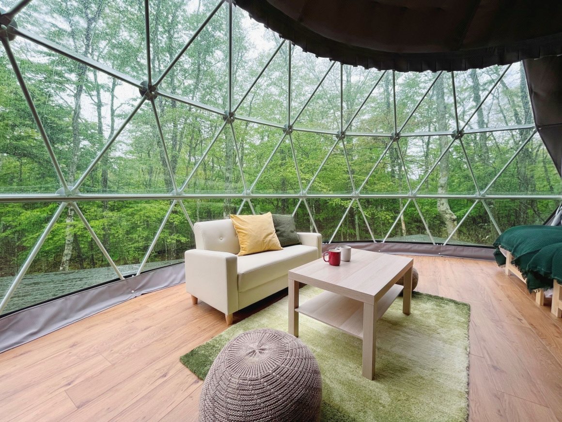 It blends into the magnificent nature of the Juriki Plateau and fills the five senses. The Juriki Plateau at the foot of Mt. Fuji is located in a natural forest area over 1000m above sea level. Feel the nature such as the voice of birds, the scent of plants, and the green of moss (MOSS) in the woods that change their facial expressions in each season. .. About an hour and a half from central Tokyo. A lush forest at the foot of Mt. Fuji MOSS Jurigi Camp Resort is located in a forest with a site area of about 50,000 m2 and is about an hour and a half drive from central Tokyo. In addition to activities in the woods, there are spots in the surrounding area that can be enjoyed by families or small groups. A luxurious space where you can relax without worrying about the surroundings and how to stay You can stay in a spacious and comfortable dome tent and a precious airstream. Since each facility has a wide space, you can use the space without worrying about the surroundings.