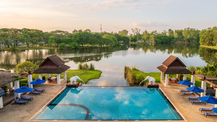 An architecture of Tawa Ravadee Resort was inspired from Dvaravati style and kept heritage due to this area has been a land of Dvaravati era which it refers to a culture, an art style. The design to emphasize on the outdoor living space, surrounded by lush greenery land of grass expanse, tranquil lotus ponds, tropical nature plants all year round, breathing air and simply admiring the charm of the Dvaravati style. This to make all guest's relaxation is more meaningful.