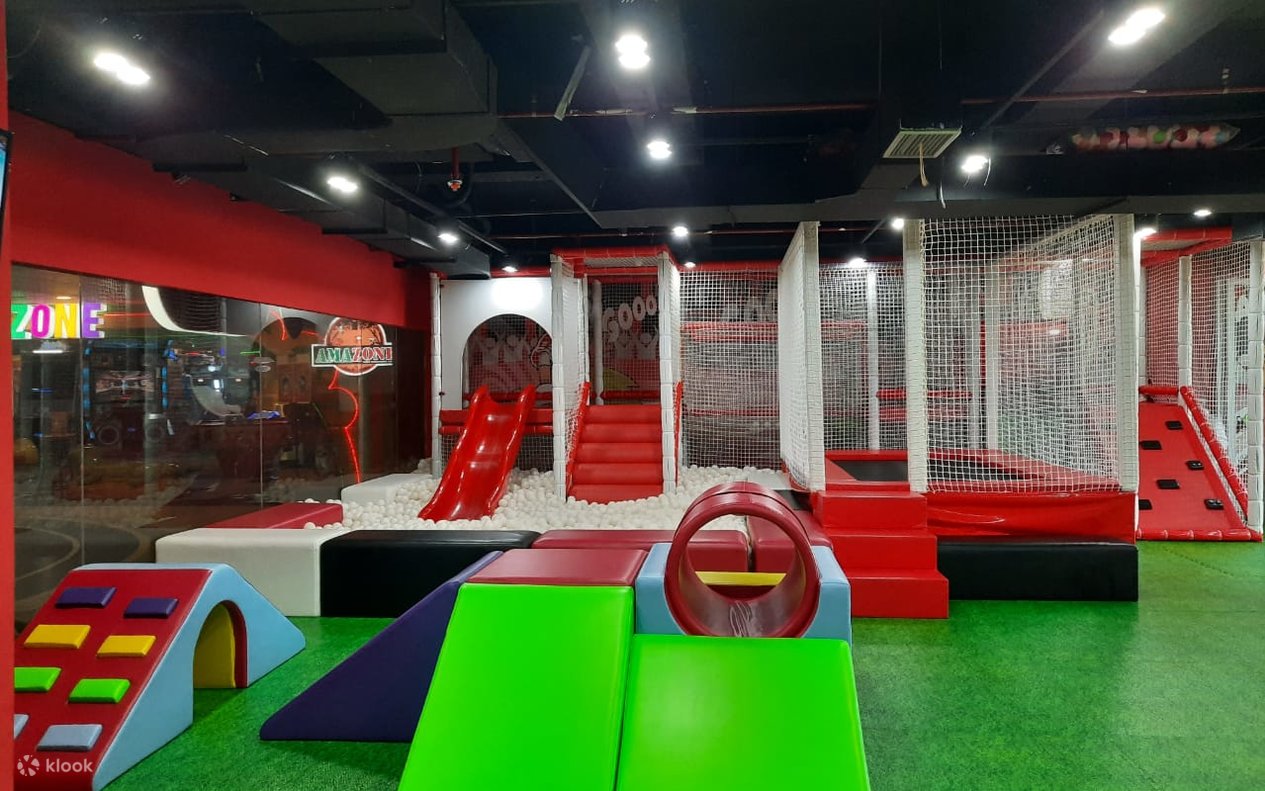 Ruang bermain indoor ini dipenuhi berbagai aktivitas dan wahana untuk anak-anak