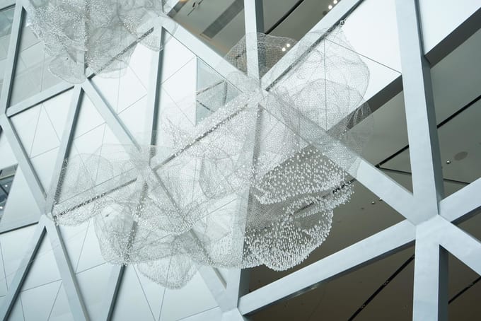 Crystal Clouds adalah salah satu instalasi seni di Jewel Changi yang mustahil untuk dilewatkan. 16 ‘awan’ ini tergantung di pintu masuk utama Jewel Changi, yang berkilau dan gemerlap baik siang dan malam.