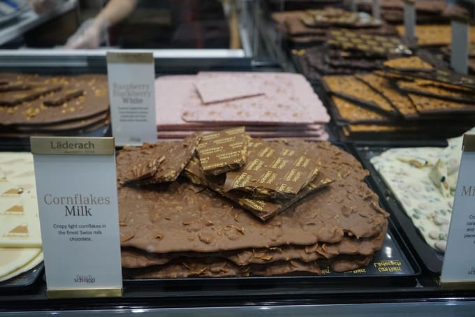 Toko Läderach pertama di Asia Tenggara, Läderach Chocolatier Suisse Singapore jelas merupakan lempengan murni FrischSchoggi, yang diterbangkan dari Swiss. Jangan lewatkan mencicipi untuk Darks, yang dibuat dengan basis 70% cokelat dan tersedia dengan berbagai campuran, dari Hazelnut klasik hingga buah Orange Almond.